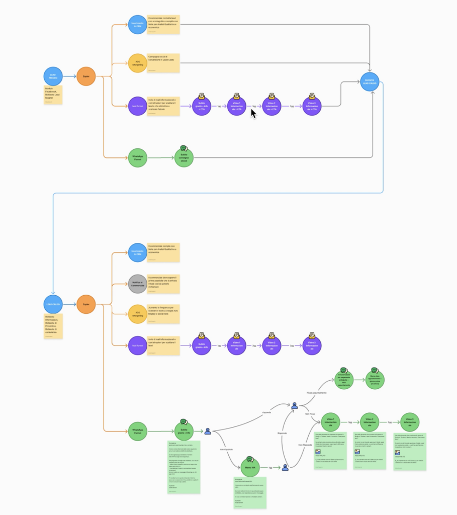 Veniamo al cuore di questo video, dove vi mostrerò l’esempio di un funnel di web makreing post-lead compreso di automazioni da attivare: